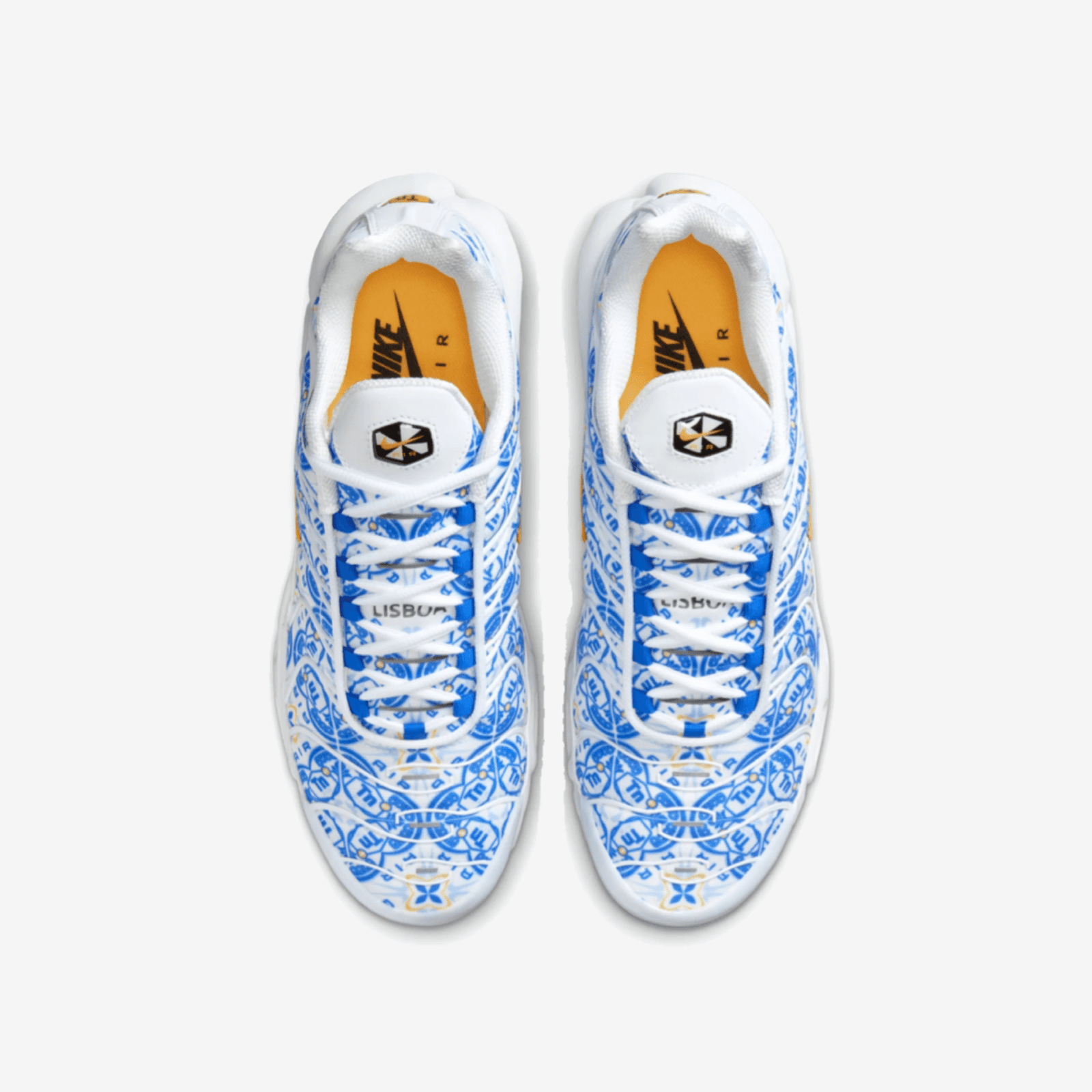 Το Air Max Plus «Lisboa» φτάνει με περίτεχνα σχέδια σε όλο το πλέγμα στο πάνω μέρος του αθλητικού αθλητικού παπουτσιού. Αυτές οι διακοσμήσεις είναι μια αναφορά στο azuleho, μια μορφή κεραμικής πλακιδίων με βαφή κασσίτερου και γυαλισμένο πορτογαλικό χρώμα. Αυτή η τέχνη χρονολογείται αιώνες πριν και έκτοτε έχει γίνει μια από τις πολύτιμες συνεισφορές της Λισαβόνας στον παγκόσμιο πολιτισμό και τις τέχνες. Εκτός από το όμορφο μοτίβο, η Nike προσθέτει ένα πλακιδωτό μοτίβο κάτω από τις σόλες, ορατό μέσα από το ημιδιαφανές καουτσούκ στο κάτω μέρος. Η λέξη «Lisboa» αναγράφεται στη γλώσσα, ενώ μια αναφορά στη σημαία της Λισαβόνας εμφανίζεται στο λογότυπο με το κόσμημα από πάνω (το Swoosh αντικαθιστά το οικόσημο).