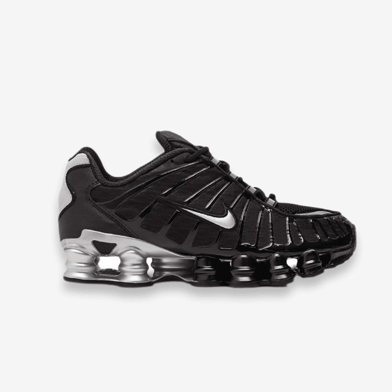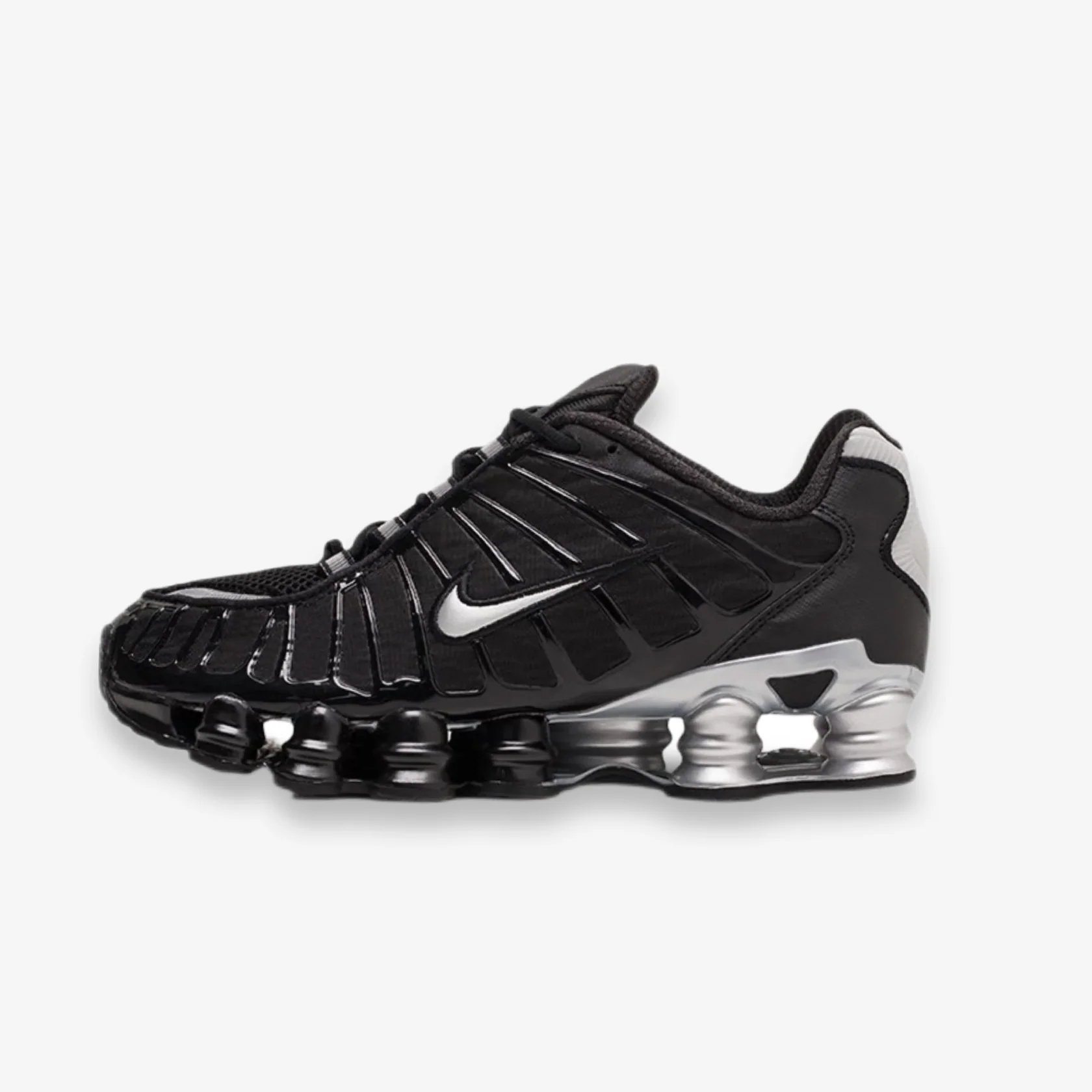 Το Nike Shox TL Black Metalic φέρνει μια τολμηρή και δυναμική εμφάνιση στη εμβληματική σειρά Shox. Αυτό το ανδρικό sneaker διαθέτει κομψό μαύρο επάνω μέρος που συμπληρώνεται από εντυπωσιακές πινελιές απο μεταλικό χρώμα, δημιουργώντας μια οπτικά ελκυστική αντίθεση. Ο σχεδιασμός του παπουτσιού ενισχύεται περαιτέρω από μεταλλικές ασημένιες λεπτομέρειες, προσθέτοντας μια πινελιά κομψότητας στην αθλητική αισθητική του. Το μοντέλο Shox TL είναι γνωστό για το χαρακτηριστικό του σύστημα απορρόφησης κραδασμών, το οποίο παρέχει υποστήριξη απόκρισης και επιστροφή ενέργειας σε κάθε βήμα.
